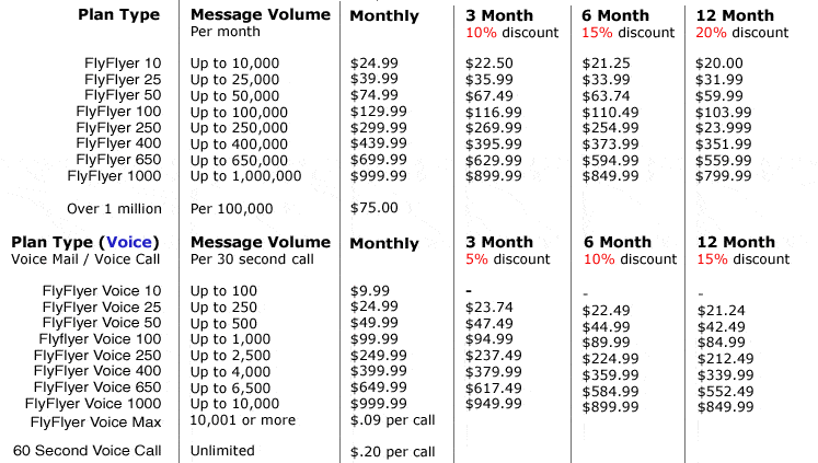 • Design of your custom FlyFlyer, SMS message or voice-mail message based
